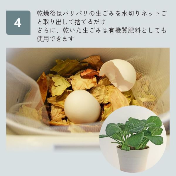 生ゴミには水分が多く含まれているため、温風で乾燥させる事はとても有効で、約1/4の減容ができるため 有料ゴミ袋の節約になるところが最大のオススメポイント!