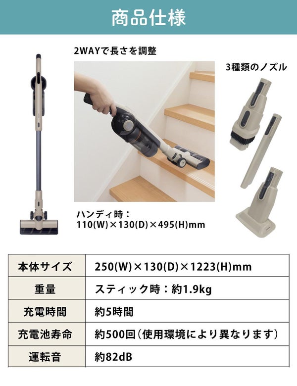 | 外形寸法 | スティック時:250(W)×130(D)×1223(H)mm |