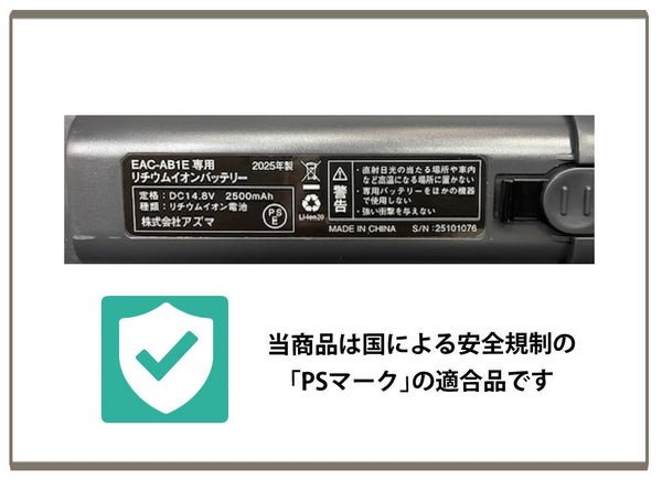 | 充電池 | リチウムイオン電池 14.8V 2500mAh |