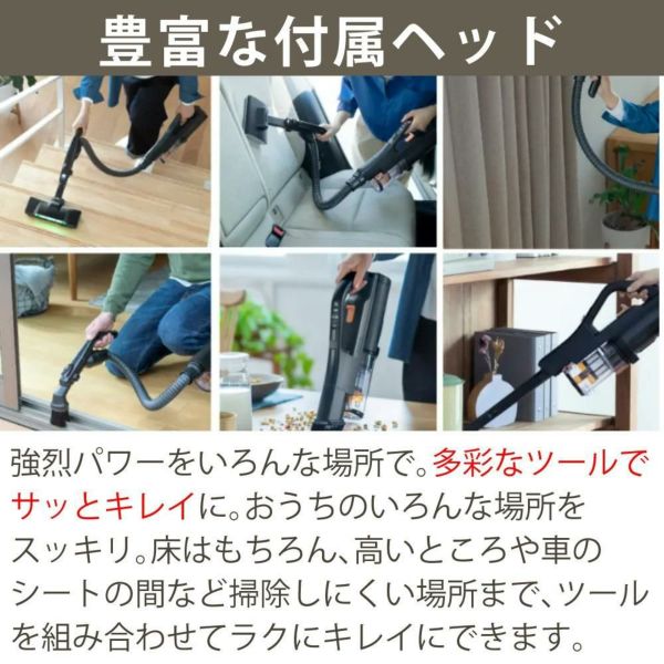 おうちのいろんな場所をスッキリ。床はもちろん、高いところや車のシートの間など掃除しにくい場所まで、ツールを組み合わせてラクにキレイにできます。