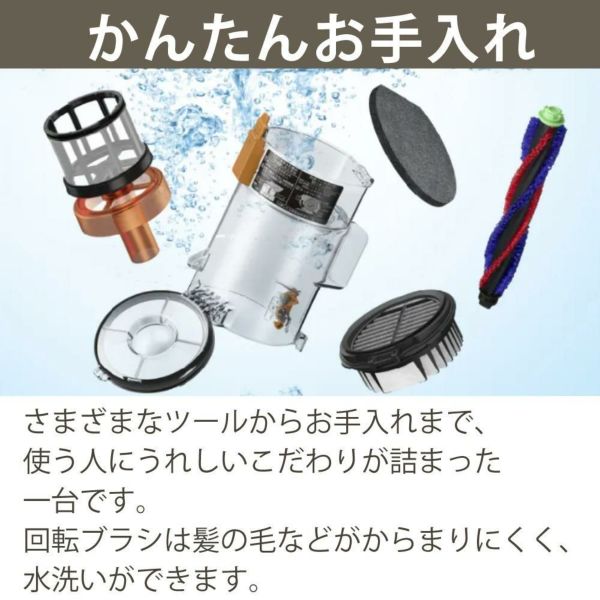 さまざまなツールからお手入れまで、使う人にうれしいこだわりが詰まった一台です。回転ブラシは髪の毛などがからまりにくく、水洗いもできます。