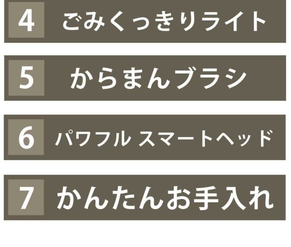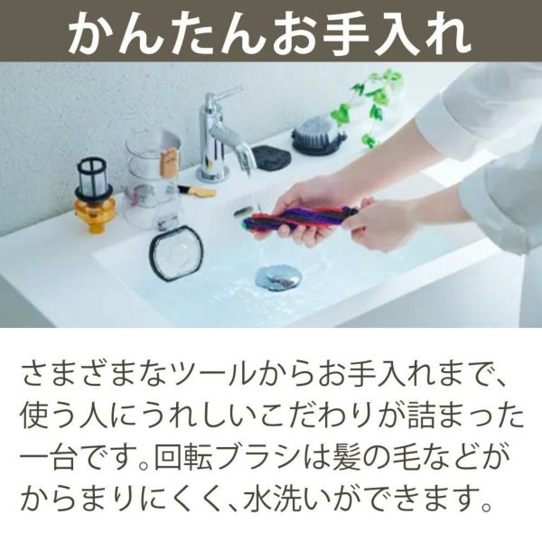 使いやすさにこだわっています。さまざまなツールからお手入れまで、使う人にうれしいこだわりが詰まった一台です。回転ブラシは髪の毛などがからまりにくく、水洗いができます。