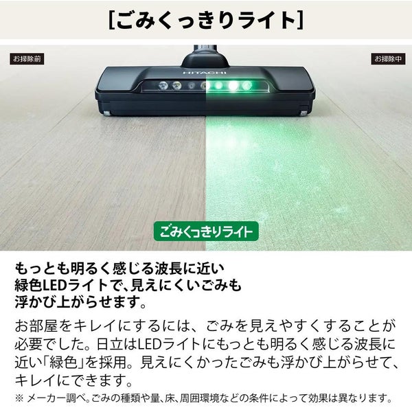 ごみを照らし出して強い吸引力で軽々キレイにできる。