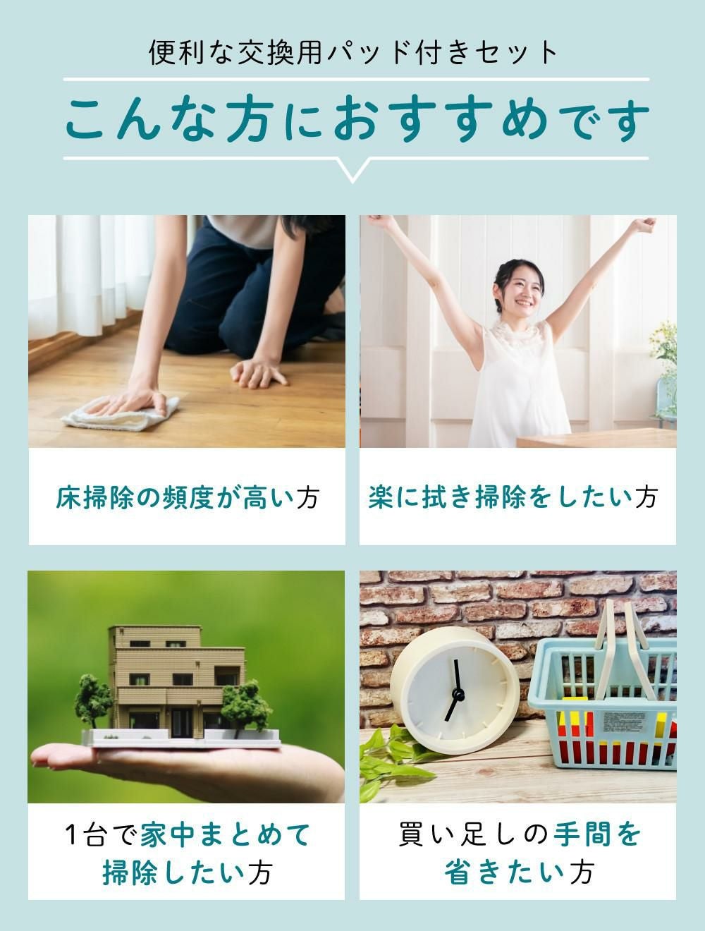 ※モップパッドの絞り方や床面の状況によって異なります。 |