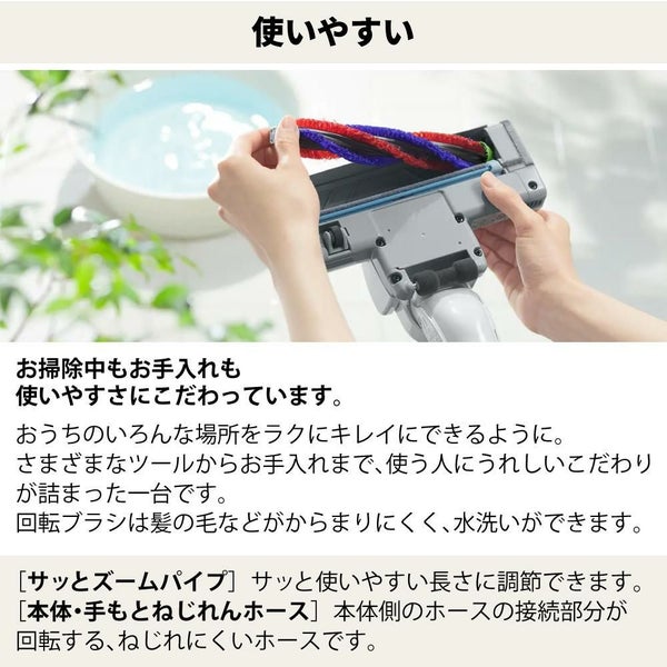 おうちのいろんな場所をラクにキレイにできるように。さまざまなツールからお手入れまで、使う人にうれしいこだわりが詰まった一台です。