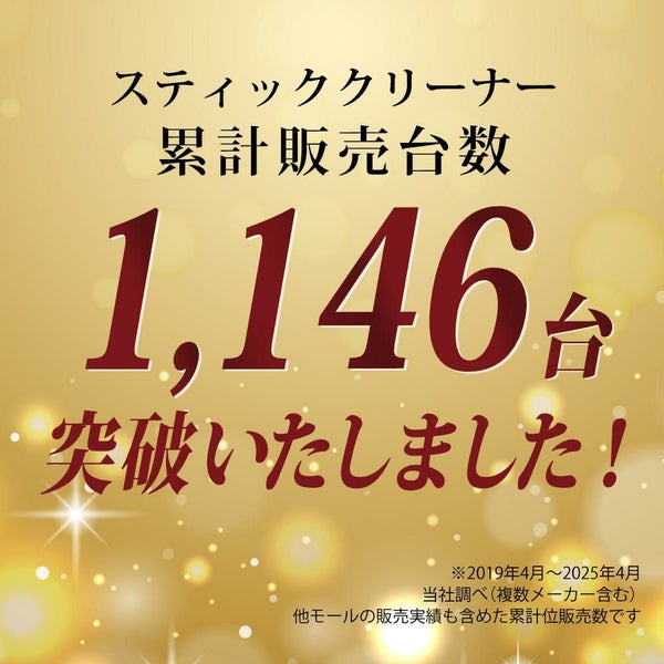 *ASTM F1977-04に基づくSGS-IBR(米国)および自社による試験結果(2020-2022年に実施)。ダイソンを除く国内の売上上位7社の最上位軽量コードレススティッククリーナー(2021年7月-12月の独立調査会社のデータに基づく)との比較。試験は0.3μm以上の粒子を使用し、強モードで実施。 軽量コードレスクリーナーとは、意識調査により、軽量と感じる本体質量として2kg未満という回答が約90%であったことから、スティック時の質量が2kg未満と自社にて定義したもの(2019年6月 家電量販店社員に対するインターネット調査 n=6636)。
