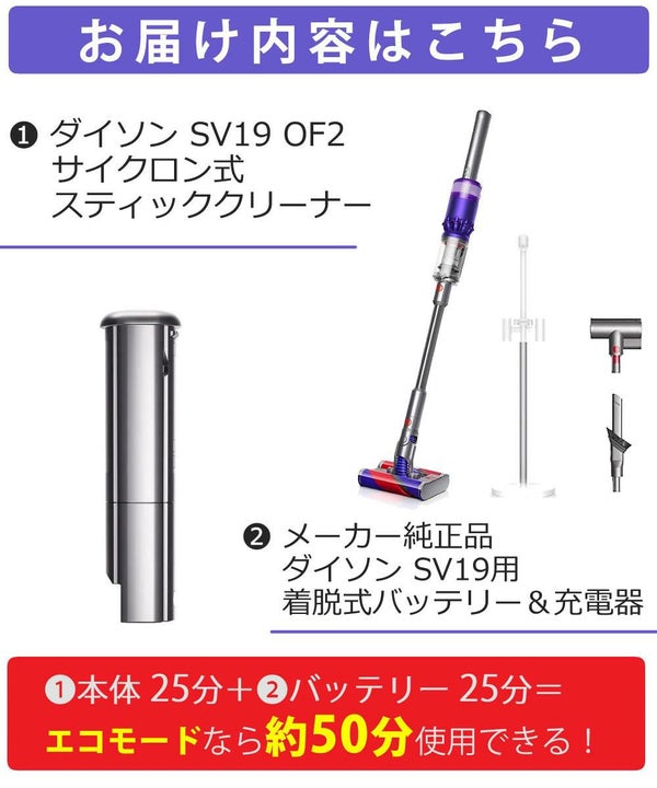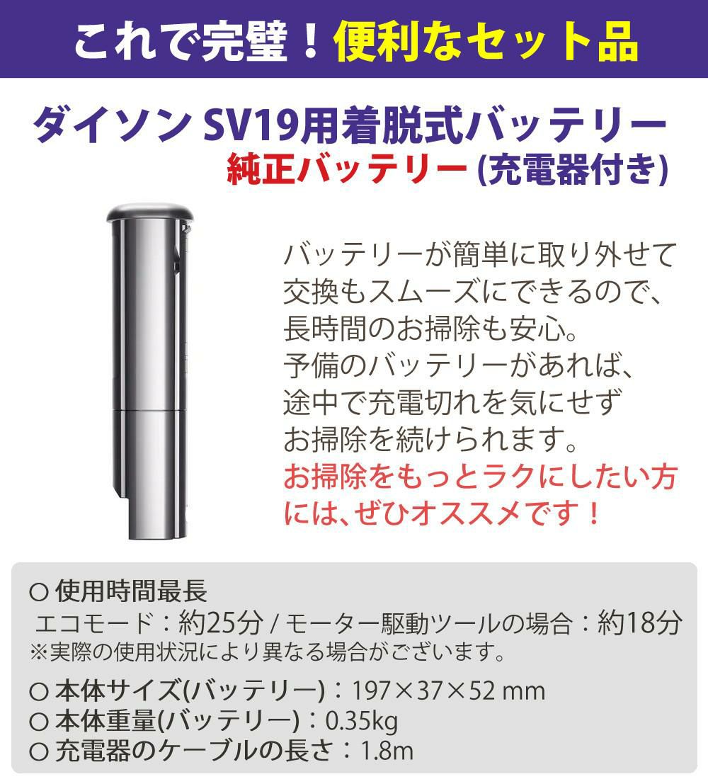 | 2)ダイソン SV19用着脱式 純正バッテリー(充電器付) |