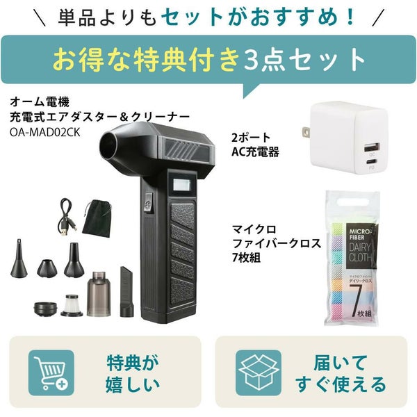 1)オーム電機 充電式エアダスター&クリーナー OA-MAD02CK