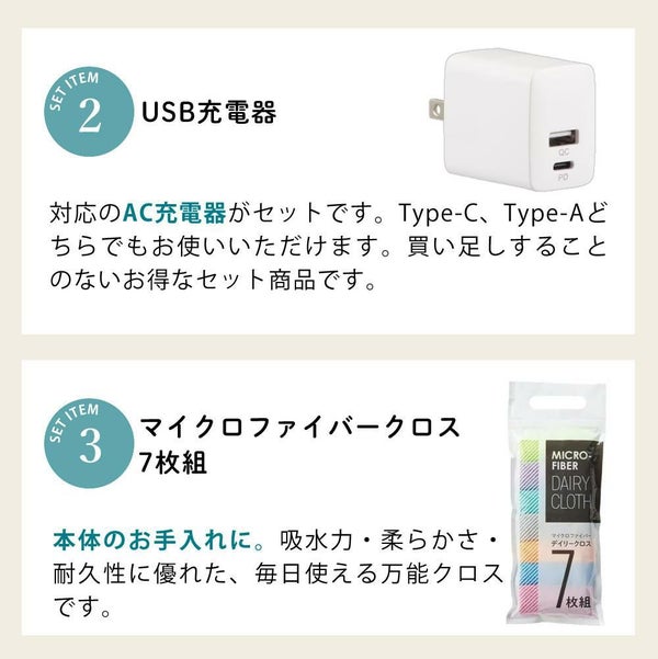 充電用USB Type-Cケーブル(長さ:約25cm)、収納袋×1、保証書付取扱説明書 |