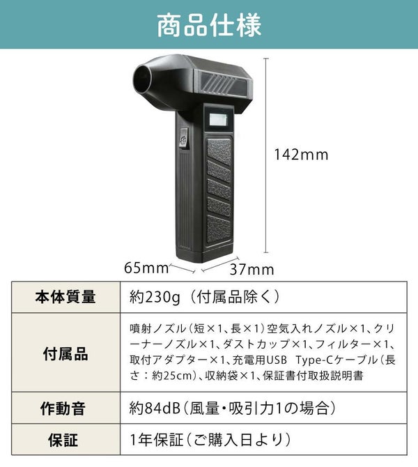 ● 充電式エアダスター&クリーナー 2WAY(強風噴射+強力吸引)
