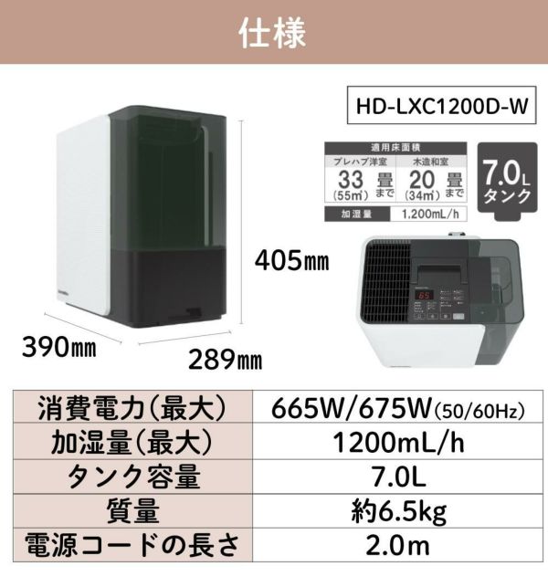 ▼ダイニチ工業 ハイブリッド式 加湿器 LXCタイプ スノーホワイト HD-LXC1200D-W