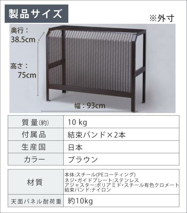 室外機を隠すことで、生活感を消すことができるシンプルな飽きのこないデザイン。天板に10kgまで物も置けます!天面に滑り止めやフチなどはついておりません。物を載せてご使用になる場合は、落下に十分ご注意ください。