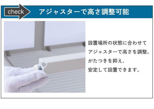 設置場所の状態に合わせてアジャスターで高さを調整。