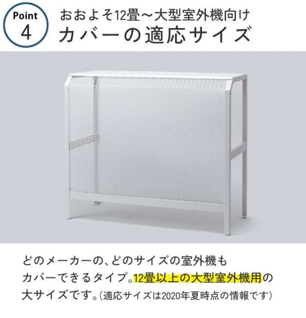 おおよそ12畳以上向けの室外機用大型サイズです。(ご購入前に念のため室外機のサイズをご確認ください。)