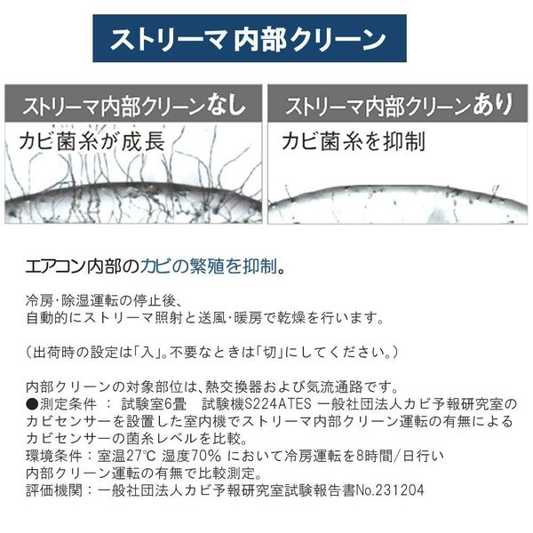ストリーマ内部クリーンは冷房・除湿運転の停止後、自動的に行われるため、不要なときは「切」にしてください。