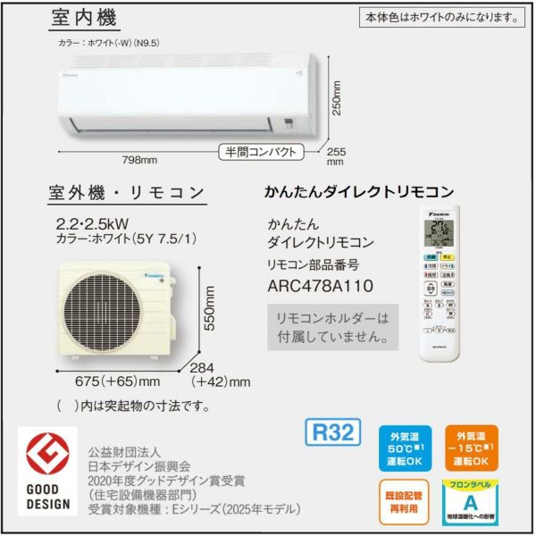 ダイキン エアコン 6畳 Eシリーズ 2025年 S225ATES-W
