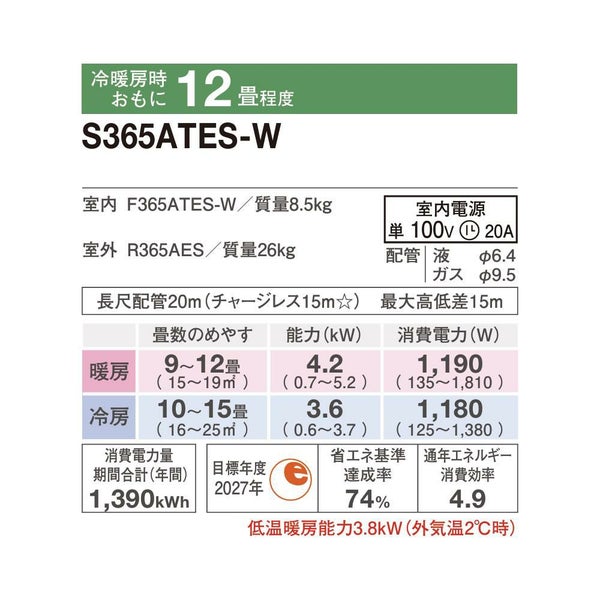 | 12畳程度 | S365ATES-W | AN365AES-W |