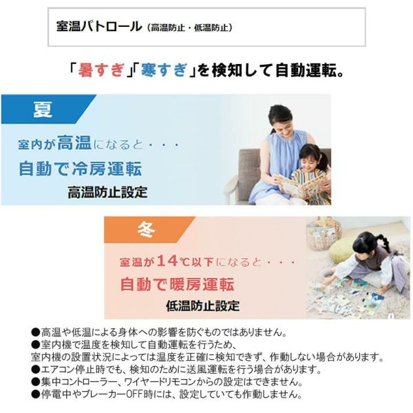 ※3 高温や低温による身体への影響を防ぐものではなく、集中コントローラー、ワイヤードリモコンからの設定はできません。