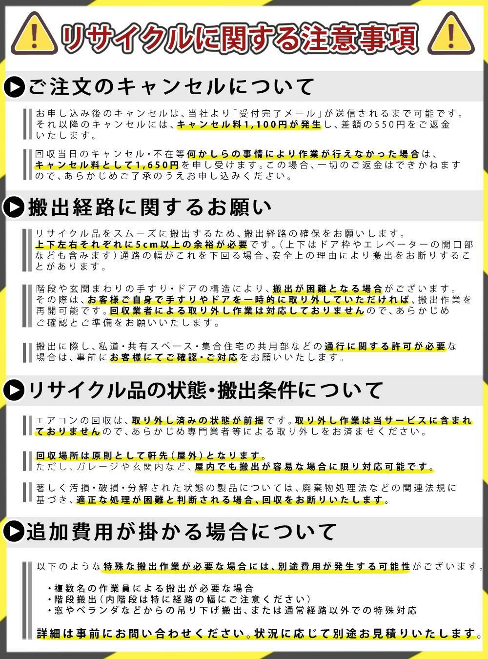 他の画像を見る (エアコン)リサイクル運搬サービス (青森県:回収のみ) こちらは当店にてエアコンをご購入されたお客様のみお申し込み可能です(代引き不可) 販売価格 ¥ 1,650 税込 カートに入れる お気に入りに登録する (0件)