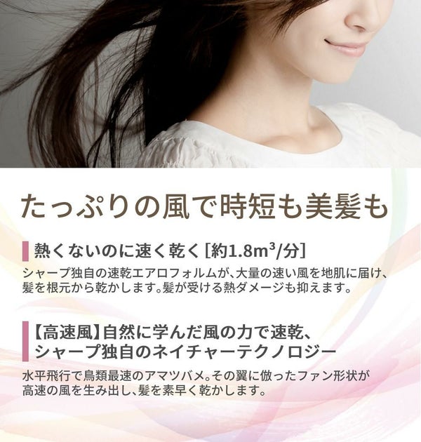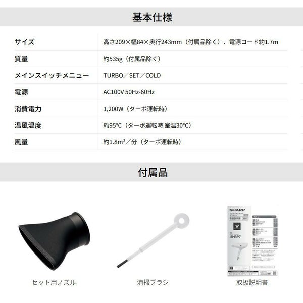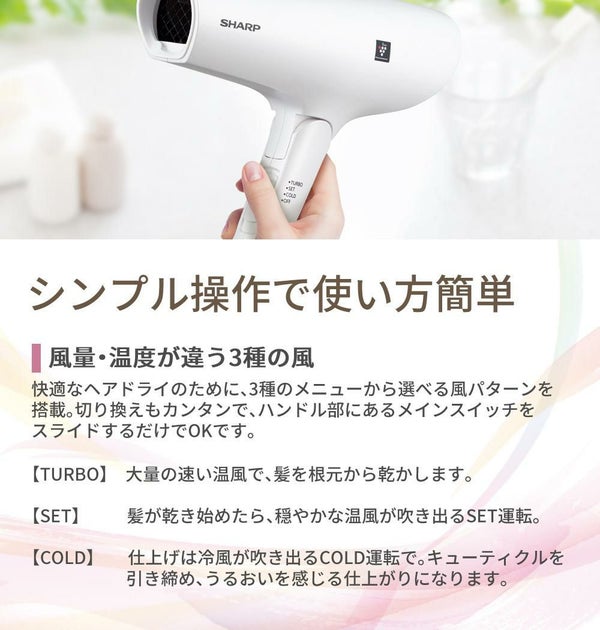 シンプル 簡単操作 大風量 美髪 SHARP シャープ ドライヤー プラズマクラスター 3段階 ターボ IB-RP7
