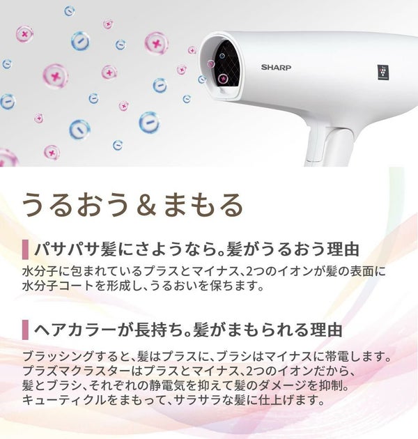 シャープ プラズマクラスター ドライヤー IB-RP7-W ホワイト 大風量 シンプル操作 速乾 美髪 ヘアケア ヘアドライ
