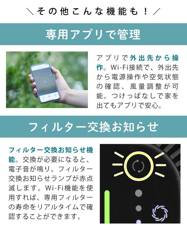 フィルター交換お知らせランプ、Wi-Fi対応(専用アプリ操作)、