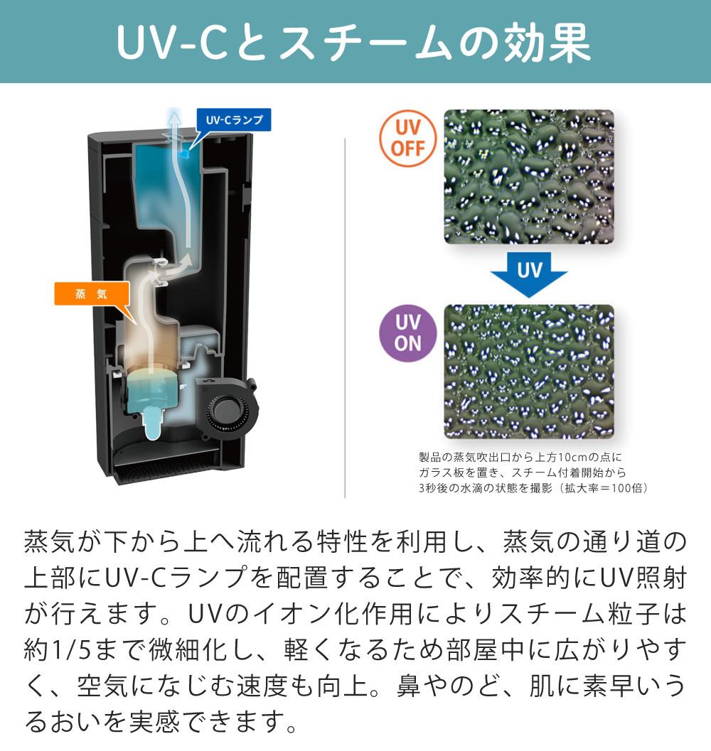 UV照射によって、さらに除菌されたスチームを放出し、安心清潔な潤いを実感できます。