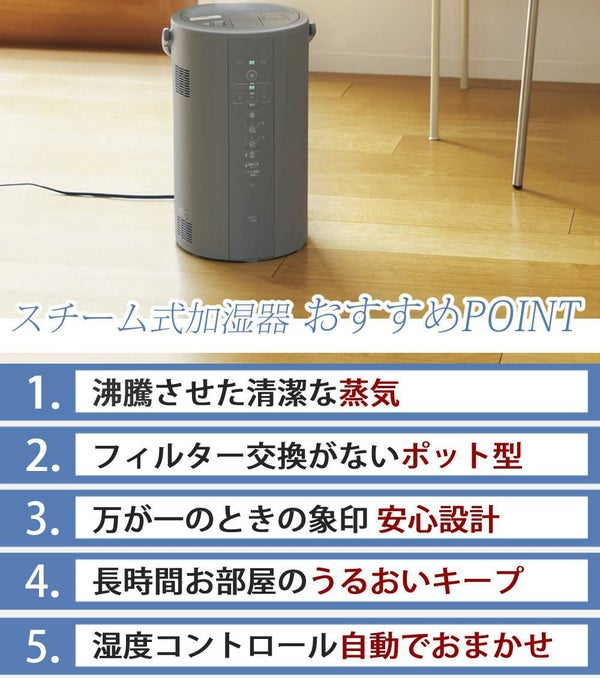 沸とうさせたきれいな蒸気でお部屋を加湿します。