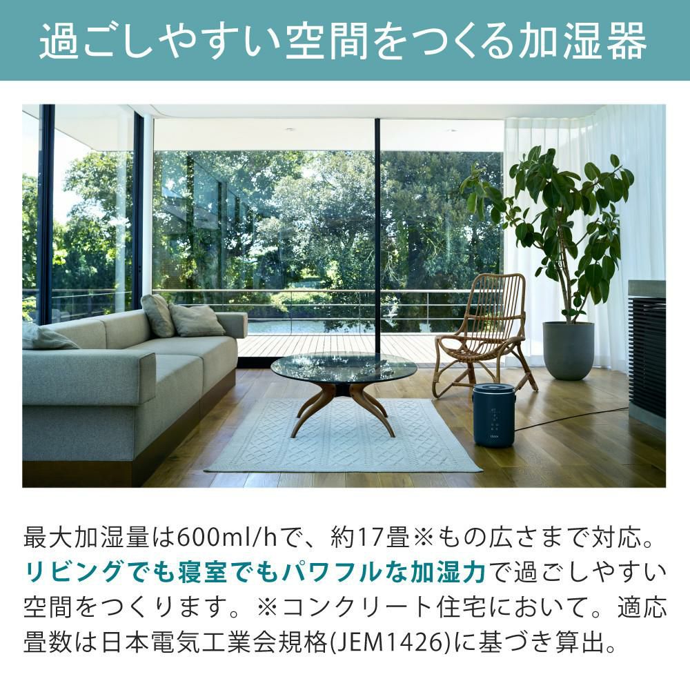 最大加湿量は600ml/hで、約17畳※ もの広さまで対応。