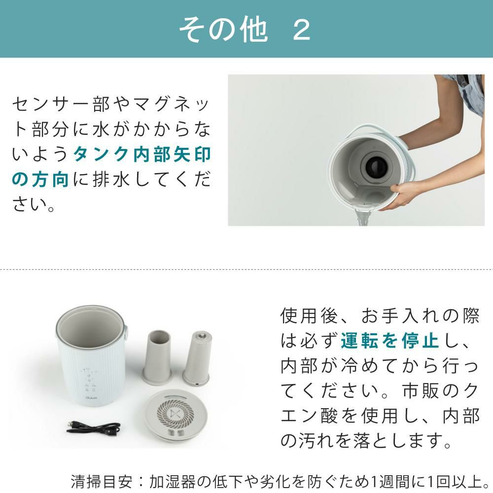 検索ワード:duux スチーム式 加湿器 大容量 4L ホワイト グレー WT GY 保護機能付 チャイルドロック
