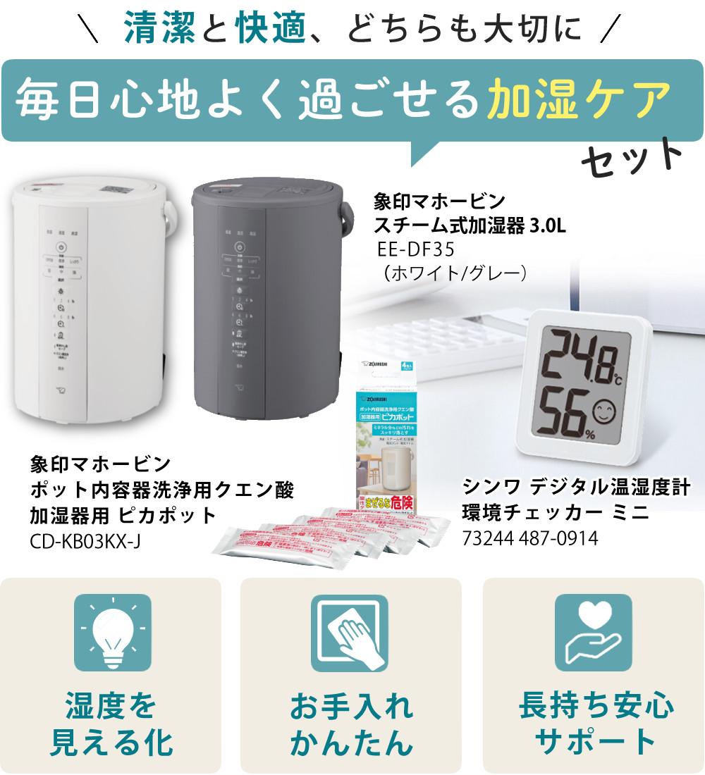 他の画像を見る 【洗浄用クエン酸&温湿度計付】象印 のスチーム式 加湿器は湿度 センサー 室温 センサー 搭載で 自動加湿 調整。フィルター不要 の 広口容器でお手入れ簡単 チャイルドロック や 転倒防止 構造 安全設計 も充実 加湿器 象印 スチーム式加湿器 3.0L EE-DF35 グレー ホワイト 2025年 クエン酸 温度 湿度計 セット 販売価格 ¥ 20,400 税込 在庫切れ カートに入れる お気に入りに登録する (0件)