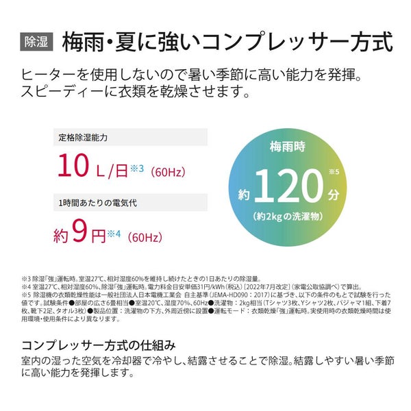 衣類乾燥: 250W (約7.8円) / 290W (約9.0円) 除湿: 245W (約7.6円) / 290W (約9.0円) 冷風: 245W (約7.6円) / 290W (約9.0円) |