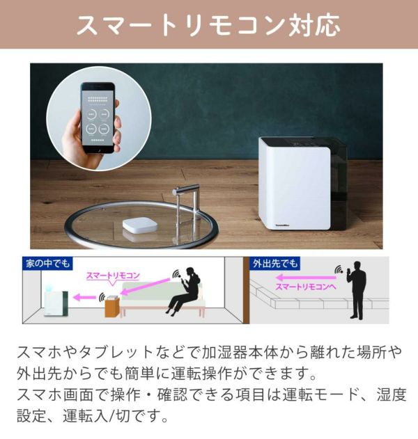 スマホやタブレットなどで加湿器本体から離れた場所や外出先からでも簡単に運転操作ができます。