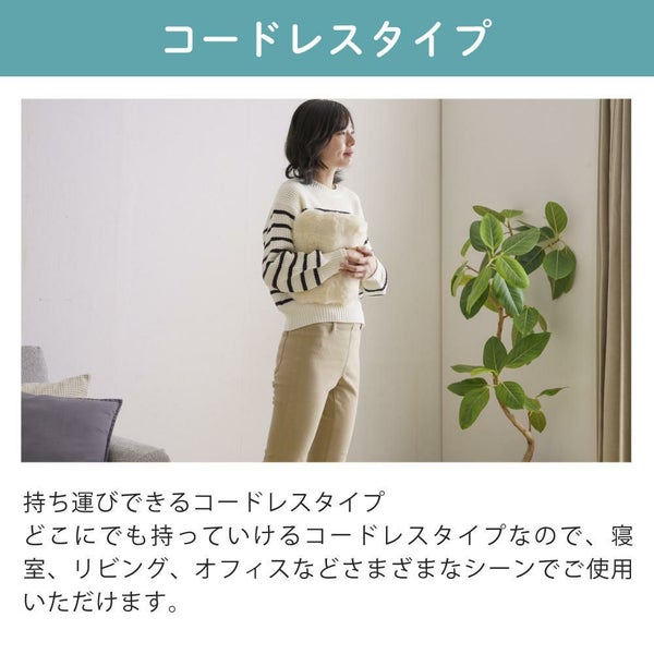 毛足の長いとろける手ざわりが特徴のコードレスタイプの湯たんぽ。ずっと触っていたくなるようなやみつきになる生地感が魅力です。また、両サイドから手を入れられる仕様で使い心地抜群です。