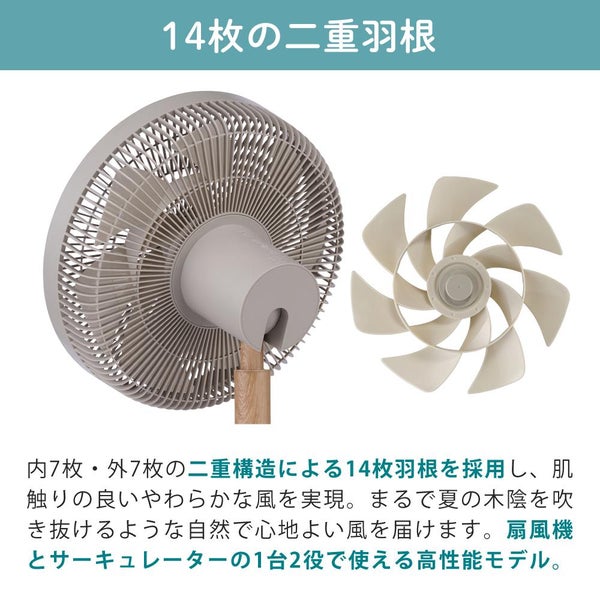 二重構造14枚羽根搭載。扇風機とサーキュレーター1台2役高性能モデル。