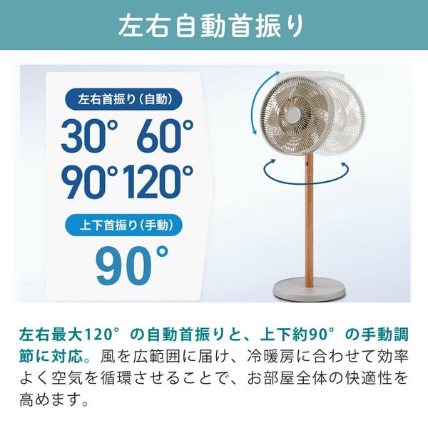 左右最大120°で風を送れる自動首振り機能搭載。