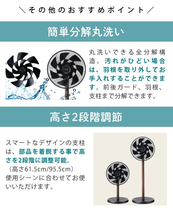 羽根を真上に向けられるので、扇風機としてだけでなく、空気循環を行うサーキュレーターとしても使えます。