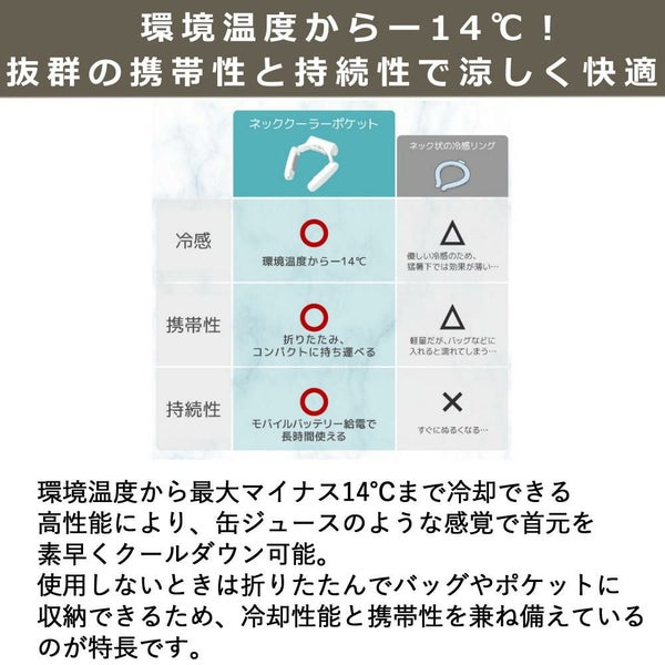 ●環境温度からー14℃!抜群の携帯性と持続性で涼しく快適に