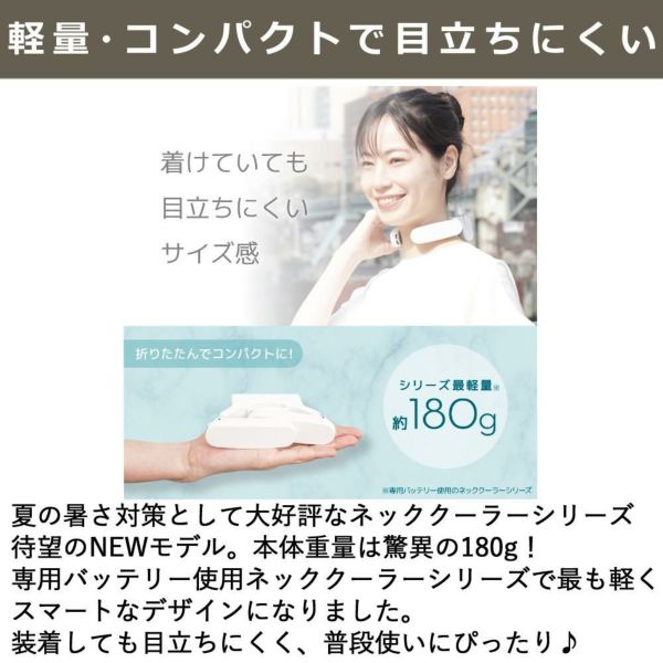 専用バッテリー使用モデルのネッククーラーシリーズ史上最軽量の180g!
