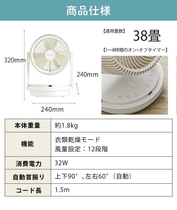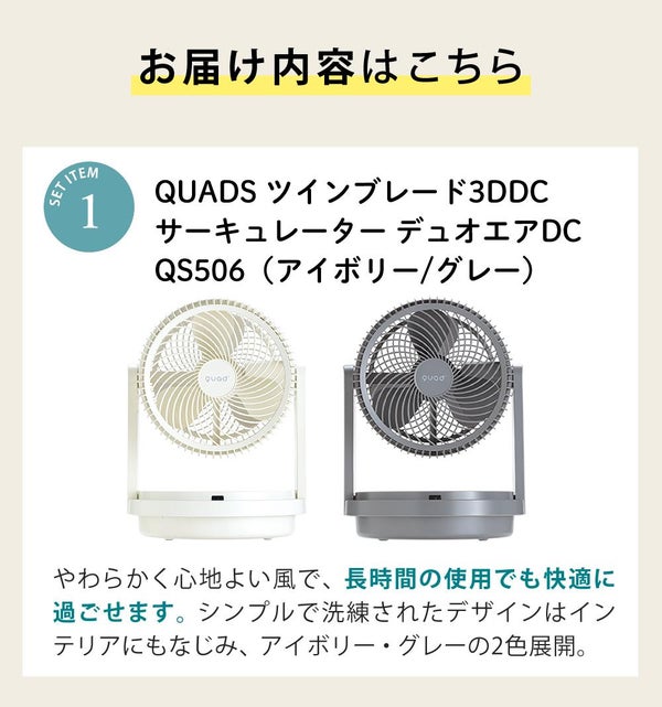1)QUADS ツインブレード3DDCサーキュレーター デュオエアDC QS506(カラー選択)