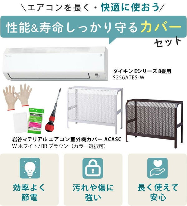 1)岩谷マテリアル エアコン室外機カバー スチール製 6~12畳サイズ ACASC ホワイトまたはブラウン