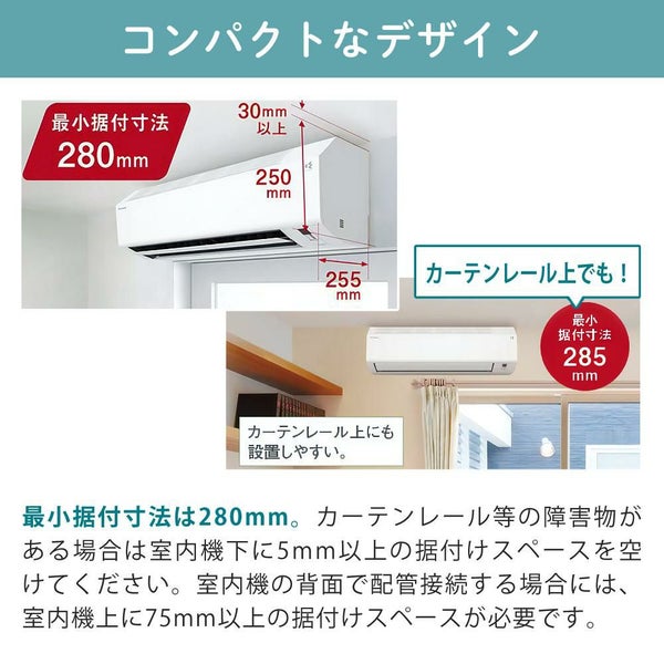 最小据付寸法280mmのカーテンレール上でも設置できる※1