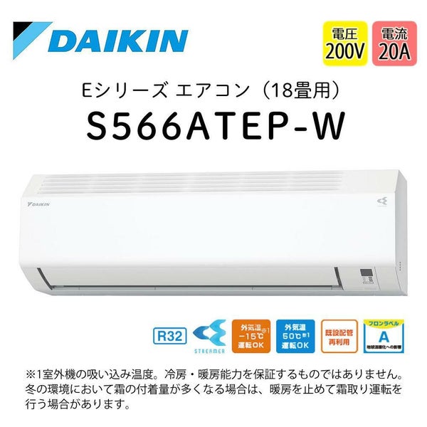 ▼ダイキン エアコン 18畳 Eシリーズ 2026年 S566ATEP-W