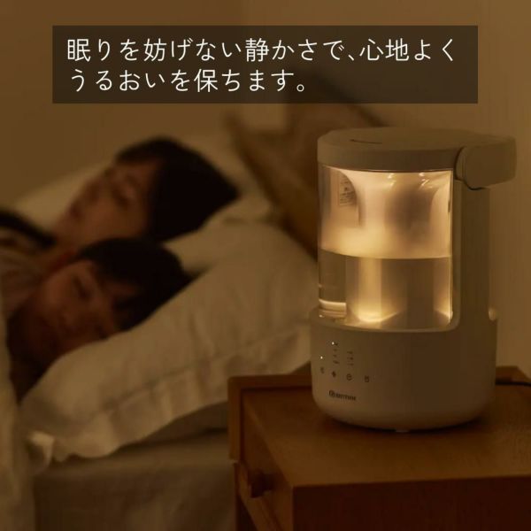 好評の超音波式プールレス加湿器「MIST 350」のコンパクトサイズ版として登場。適用畳数最大7畳の空間を加湿し、寝室や子供部屋などのパーソナルな居室などプライベート空間で使用できる「洗いやすさ」と「使いやすさ」をさらに追求した加湿器です。