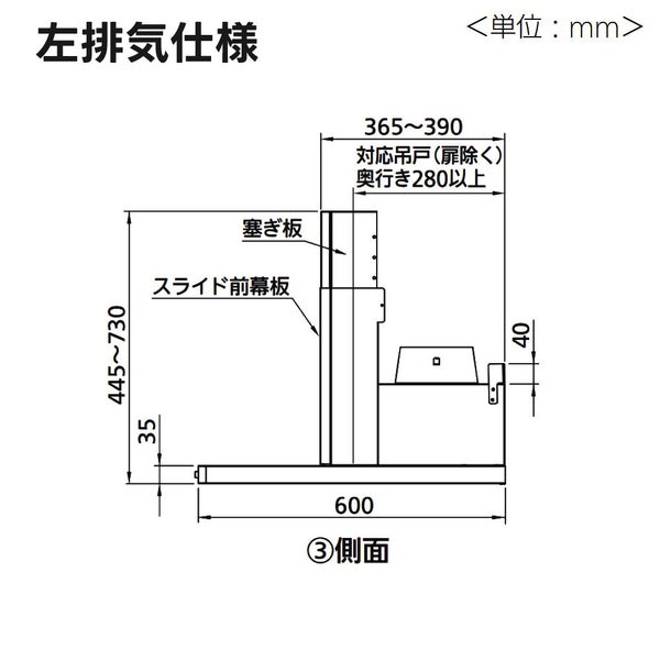 | 前幕板使用時高さ | 445mm~730mm |