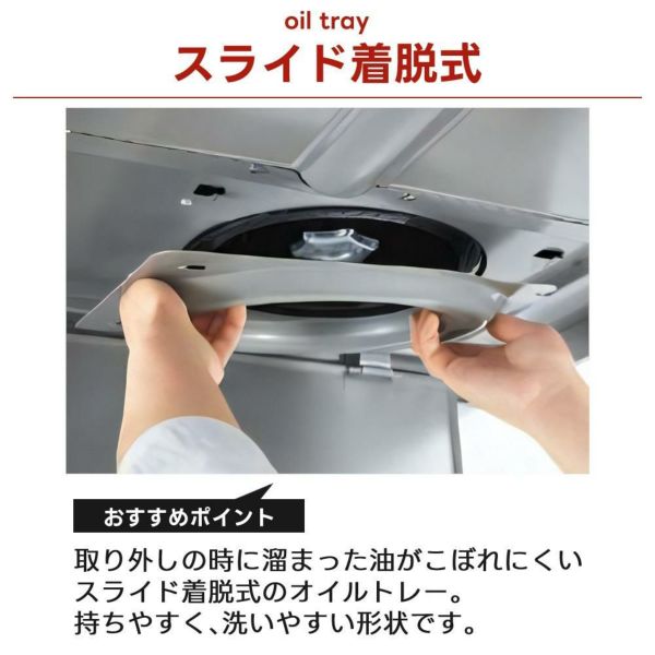 取り外しの時に溜まった油がこぼれにくいスライド着脱式。