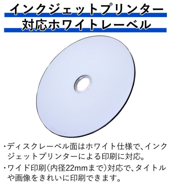 ディスクレーベル面はホワイト仕様で、インクジェットプリンターによる印刷に対応。