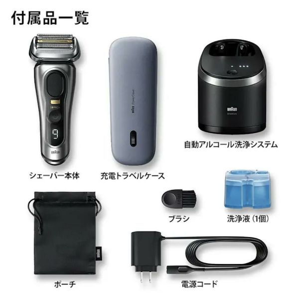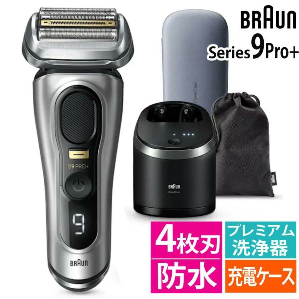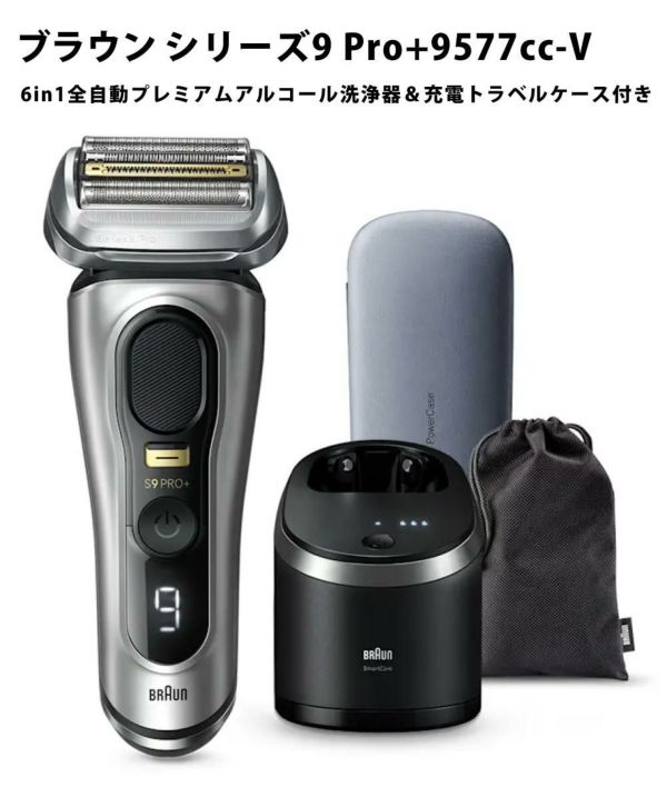 ▼ブラウン 電動シェーバー シリーズ9 Pro+ 4枚刃 9577cc-V マットシルバー 6in1 全自動プレミアムアルコール洗浄器 充電トラベルケース付き