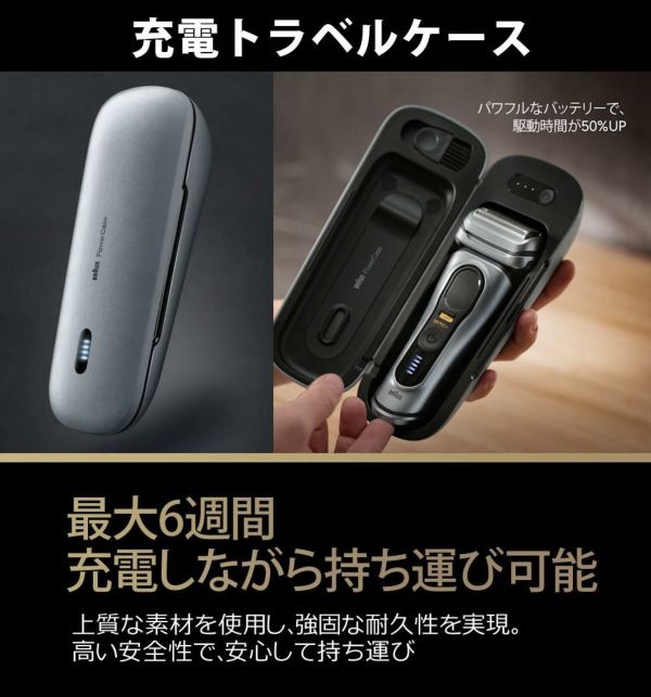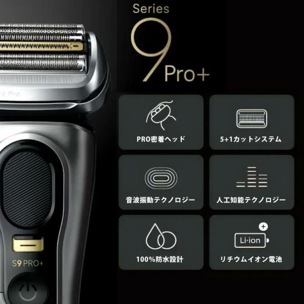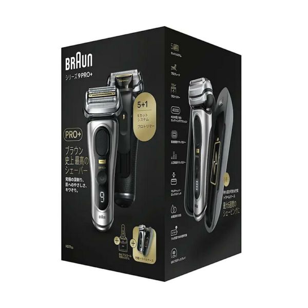 ブラウン の 電動シェーバー シリーズ9 Pro+ は、5+1 カットシステム を搭載し、肌に優しい 深剃り を実現。ウェット剃り・ドライ剃り 両対応で お風呂 でも使用可能。自動洗浄機付き で お手入れ も簡単。高性能 バッテリー搭載 で 長時間使用 でき、 旅行用 にも最適。メンズシェーバー プレゼント をお探しの方に おすすめ の一台です。
