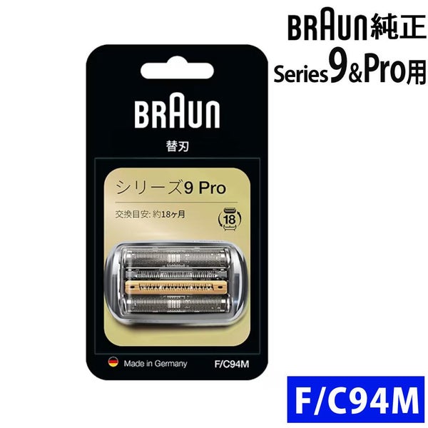 Braun( ブラウン ) シリーズ 9 Pro 用 替刃 94M は、 網刃 と 内刃 が 一体型 の 正規品 。 高性能 ヘッド で 深剃り を 実現し、 なめらか な 剃り心地 を 叶えます。 交換 目安 は 約 18ヶ月 で 、 髭剃り を 快適 に 保つため の